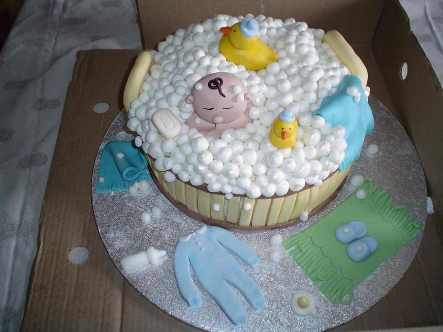 Hi..I am glad you like the cake. The tub is the cake and everything else is made from fondant. After the cake was iced is attached crumpled parchment paper to the top of the cake to create waves and height. I then made the bubbles out of fondant and proceeded to cover the cake and parchment with the balls. I then dusted them with pearl dust. I hope this explanation helps.