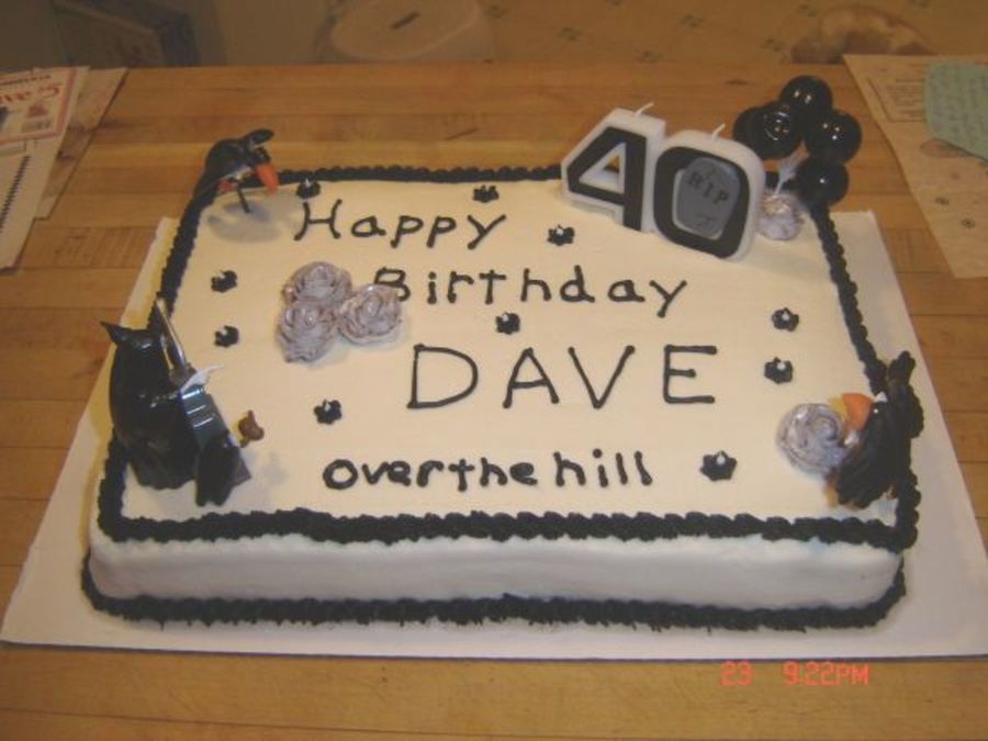 I made this cake for my BIL. My sister wanted over the hill, he didn't. So i made this which i didn't think was too "old" for him. The balloons, crows, and grim reaper were decorations i bought. I made white roses then used black color mist on them. I got that idea from someone on here, but now i can't find her cake to give credit!