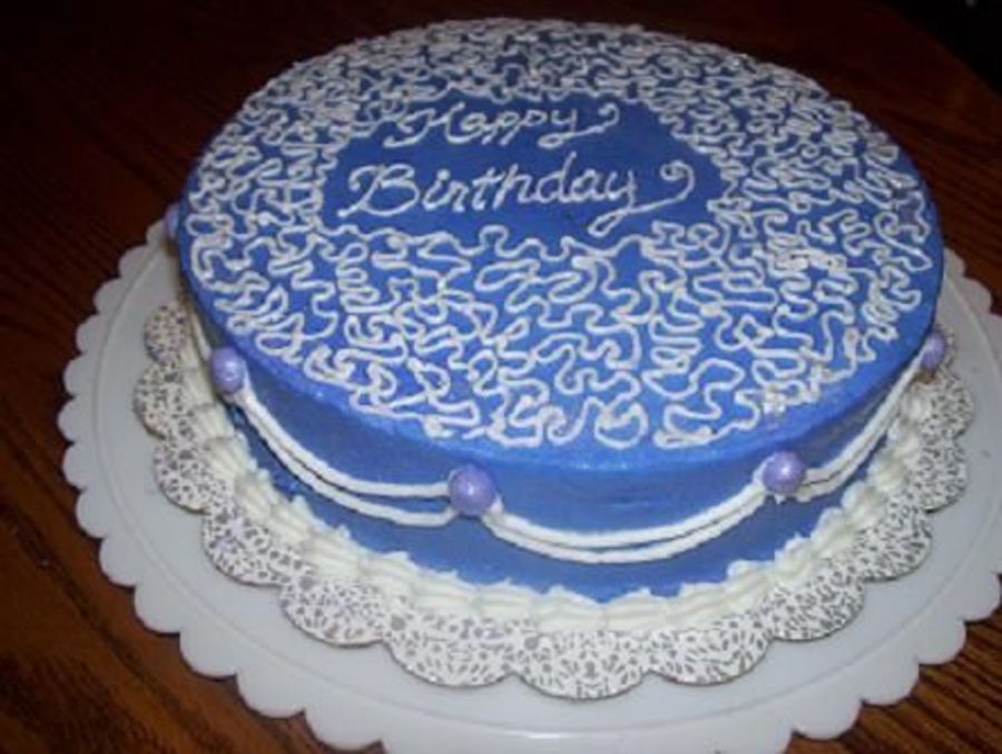 all buttercream with purple fondant pearls. im still trying to master the whole writing thing... this is the first time i have used cornelli lace