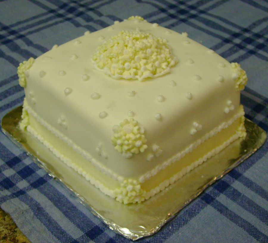 This cake I made for my husband.My first square cake, lemon with raspberry mousse(delish!)Fondant covered,fondant flowers and BC accents.Pretty easy for me to place the fondant on the cake.I was a little scared.Sadly my son pushed the top a little and it shows in the picture.But I was happy with it.