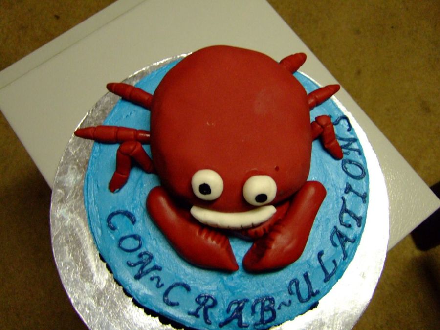 A cake for my boss who got promoted. He loves crabs! Crab is a single layer 6" round carved.