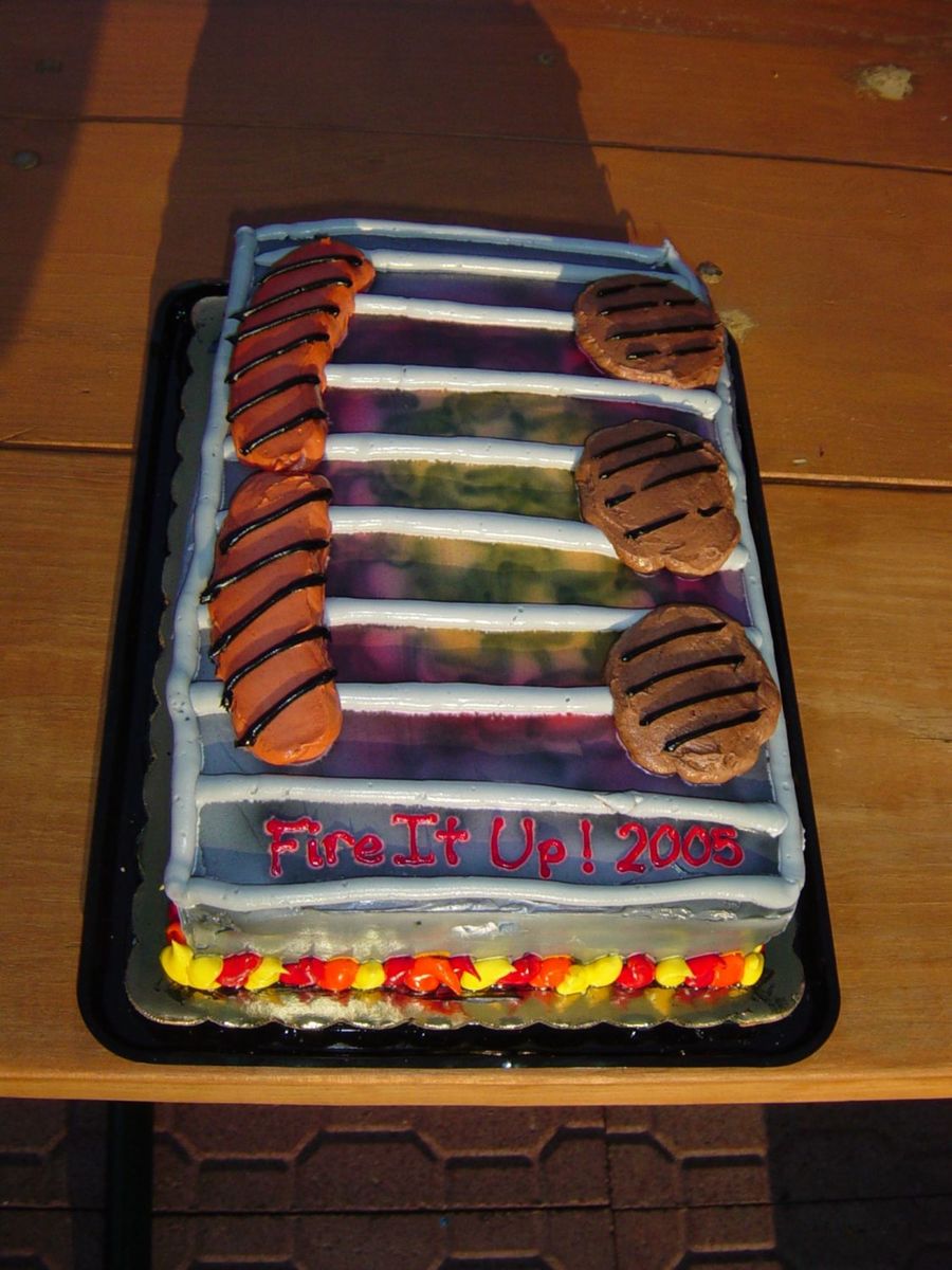 This was a cake I had done in whipped topping. It had beed pitch black with brighter "coals", but whipped topping strikes again!