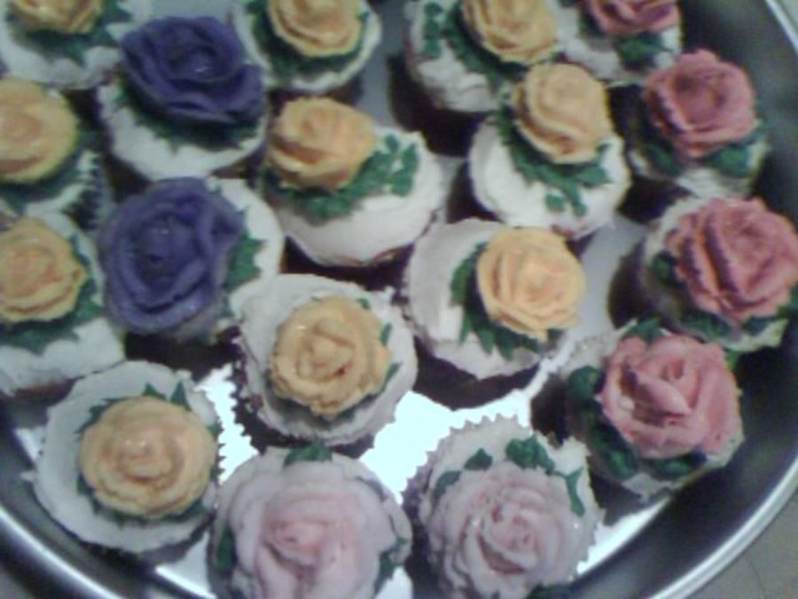 i made these for a bake sale my neighborhood was having. they went over well!! I used white cake sparkles to make them look sparkly. made of buttercream.