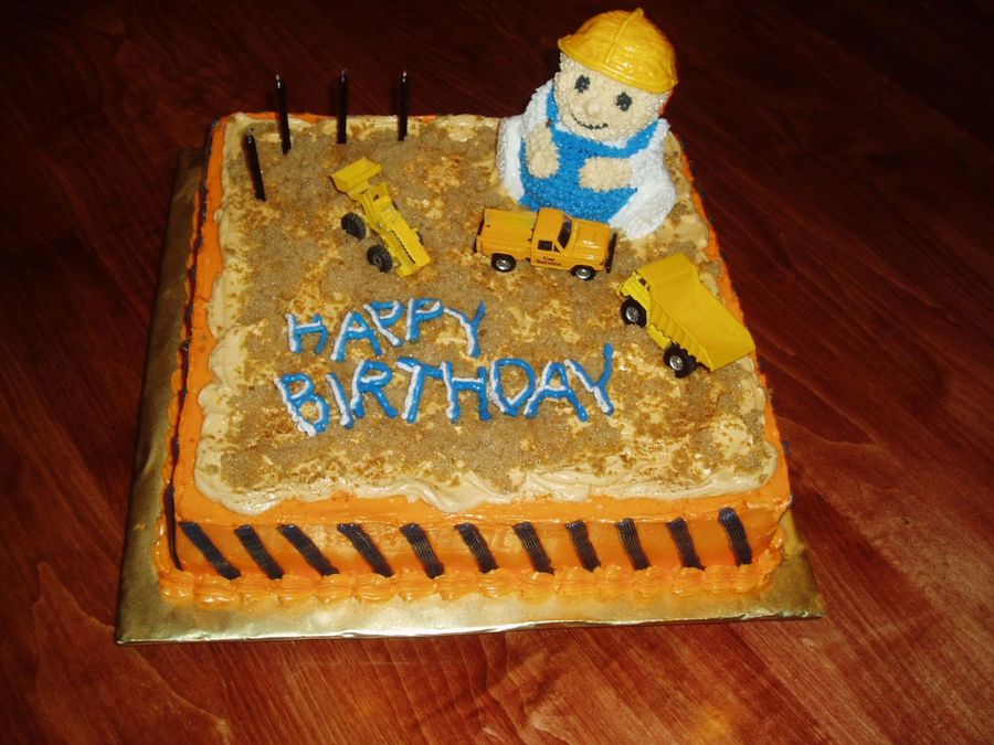 Made for a boy who was really into dirt and trucks. 12x12 square with buttercream and brown sugar for dirt and toy vehicles. The "cake boy" had red hair just like the birthday boy.