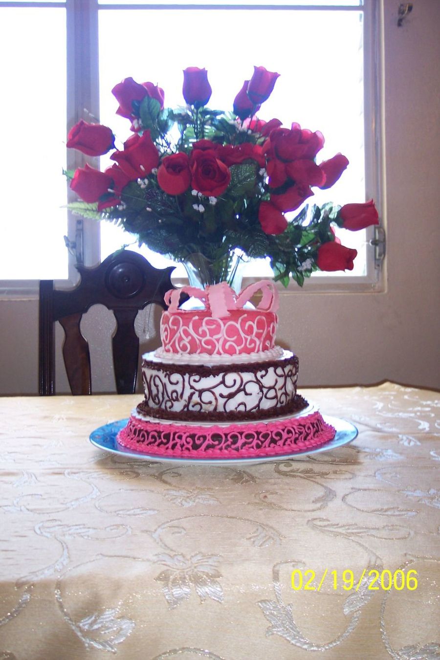 cake de chocolate con frosting de chocolate , el del medio era marmoleado y el primero de vainilla .