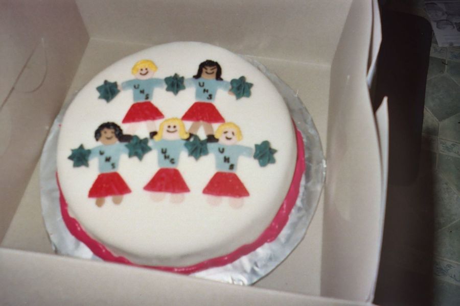 This was a birthday cake for my best friends niece. She was a cheerleader at the time. Used fondat and buttercream.