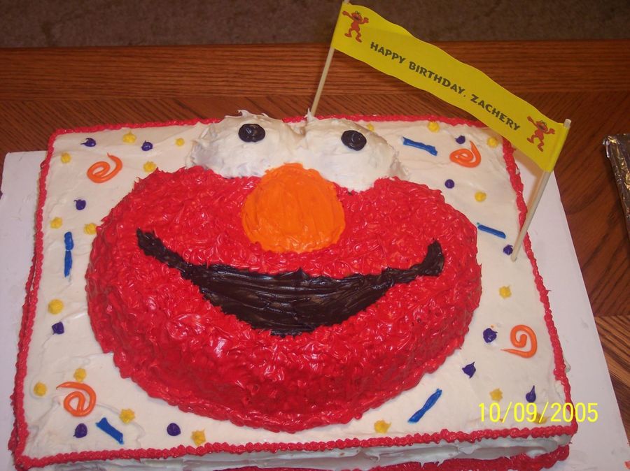 I used the Wilton's Elmo pan and placed it on a sheet cake. It was my first cake like this.