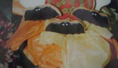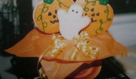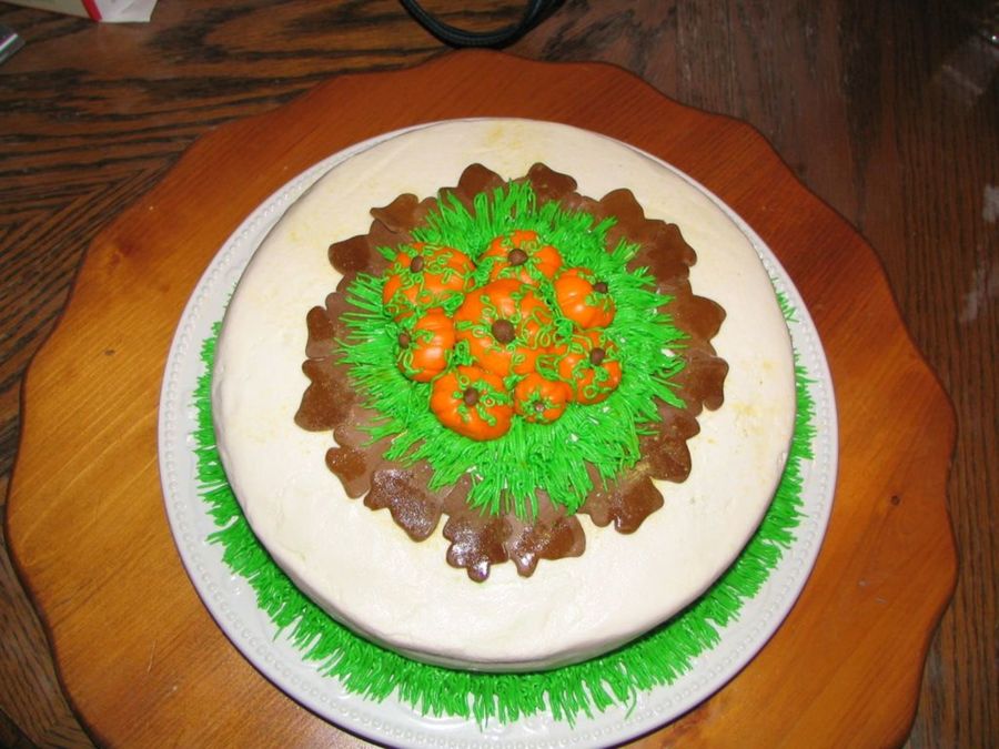 MMF Pumkins and leaves, Darn Good Chocolate Cake with Crusting Cream Cheese Frosting. Just a practice cake .