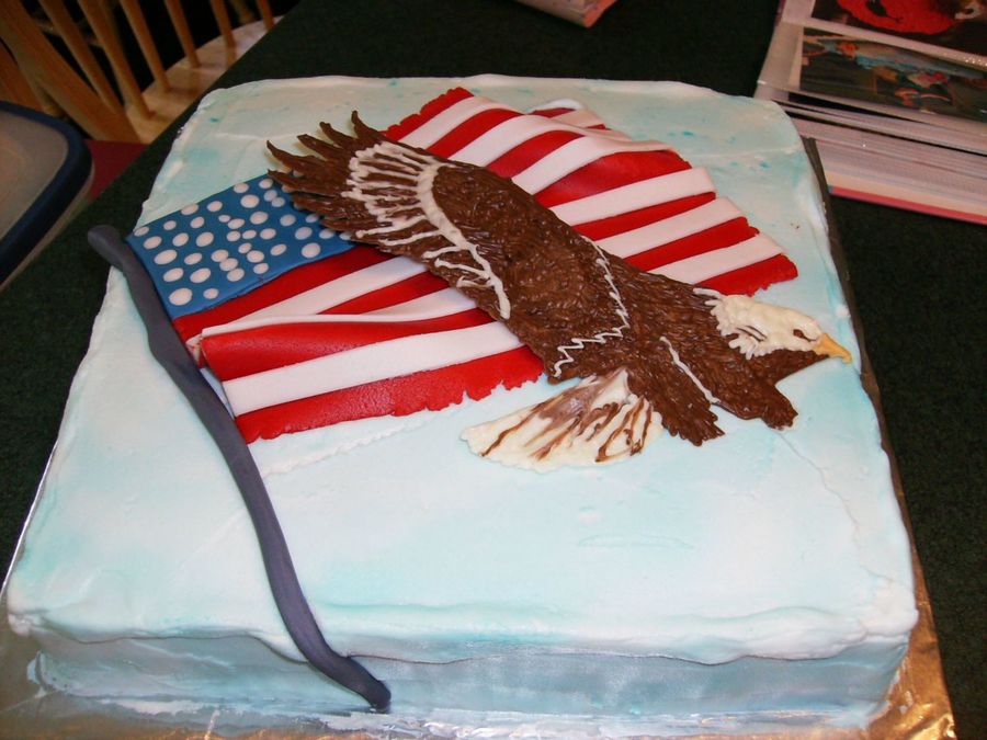 I made this for my brothers 4th party. The Eagle is a chocolate transfer and the flag is mmf.
