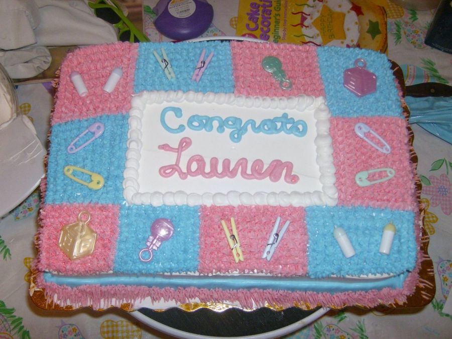 I made this for my boss at work. She didnt know what she was having so I used pink and blue and made it look like a baby blanket. It was a lot of fun and its one of my favorites!