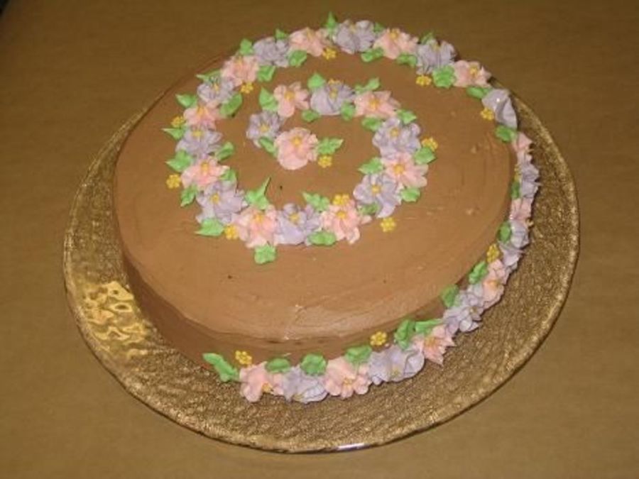 Simply beautiful cake. The swirl of flowers is mesmerizing-they are just georgous. I especially like them against the smooth chcoclate. Great job on photo too-it's the perfect setting.