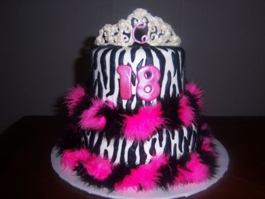 This cake was sooooo much fun to make. The customer sent me a pic of a cake that she liked and wanted me to try and replicate it with some little tweaks here and there. This is what she got. All CBC with choco pan zebra stripes, white chocolate tiara dusted with pearl luster dust and a hot pink and black feather boa.