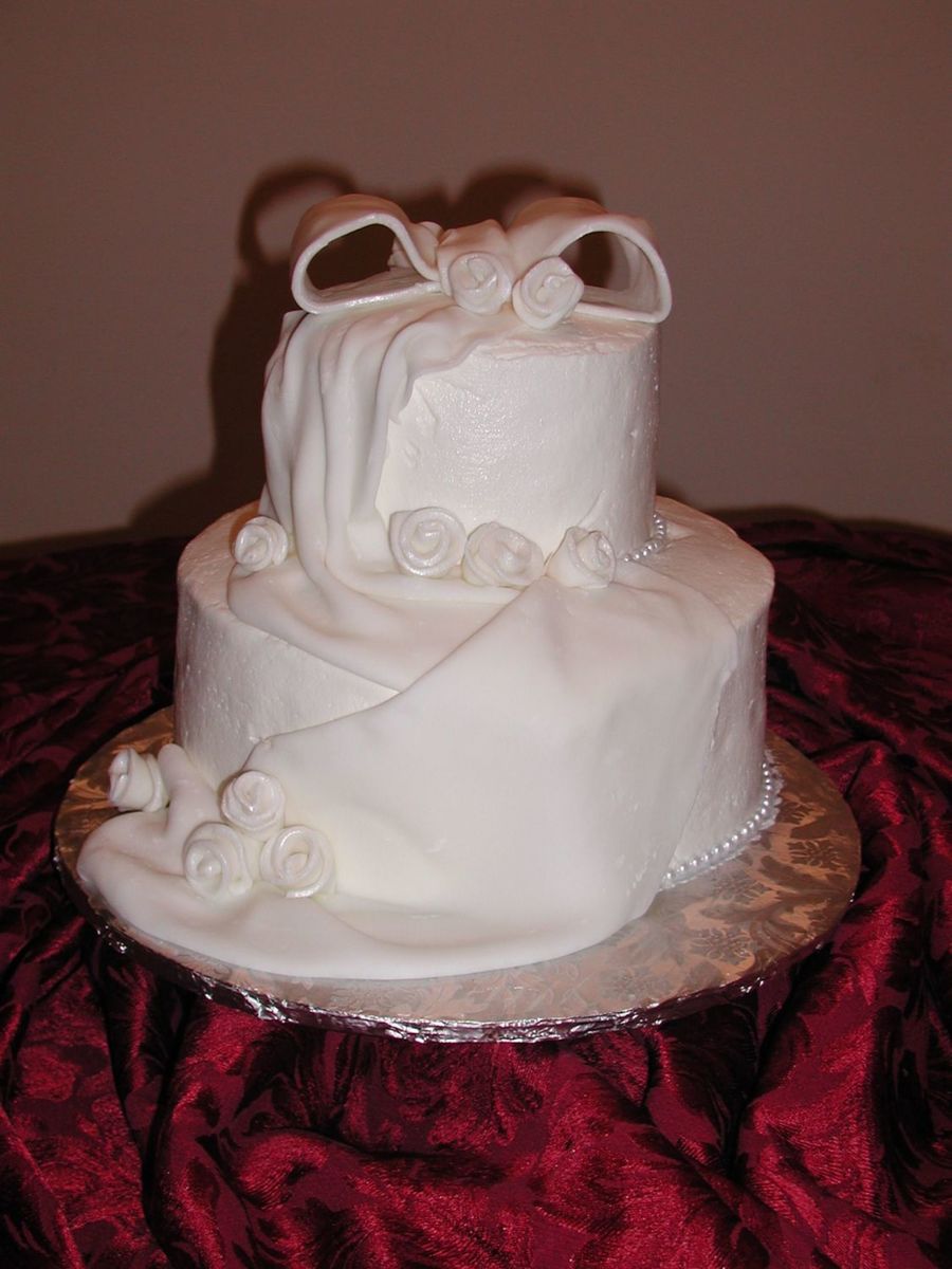 Made this over the weekend for a 40th Anniversary. The bottom layer is 2 layer torted to make 4 layers with chocolate BC filling. The top layer is 2 layer again filled with chocolate BC. This was the first time making fondant roses and drape. Second time trying a fondant bow. Pearls are not edible. The family loved it and I have gotten 2 more orders out of this cake.