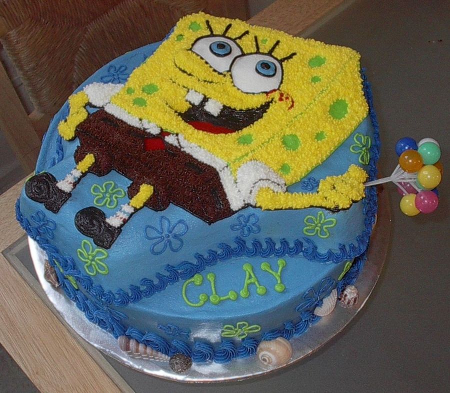 This is the 2nd Spongebob cake I've done. The first was about a year ago and it's amazing to see the difference now! Oh, I've learned so much from my CC friends!! :0) 12" round with Wilton Spongebob pan on top. All yellow cake and buttercream icing. The balloons and shells are not edible. TFL!