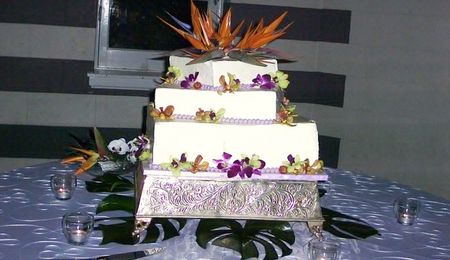 White Chocolate Wedding Cake With Birds Of Paradise And Orchids
