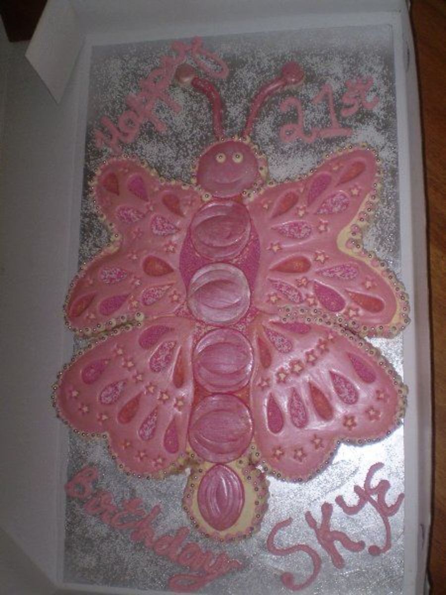 White chocolate mudcake with buttercream icing. Wings and body are white chocolate fondant overlay.