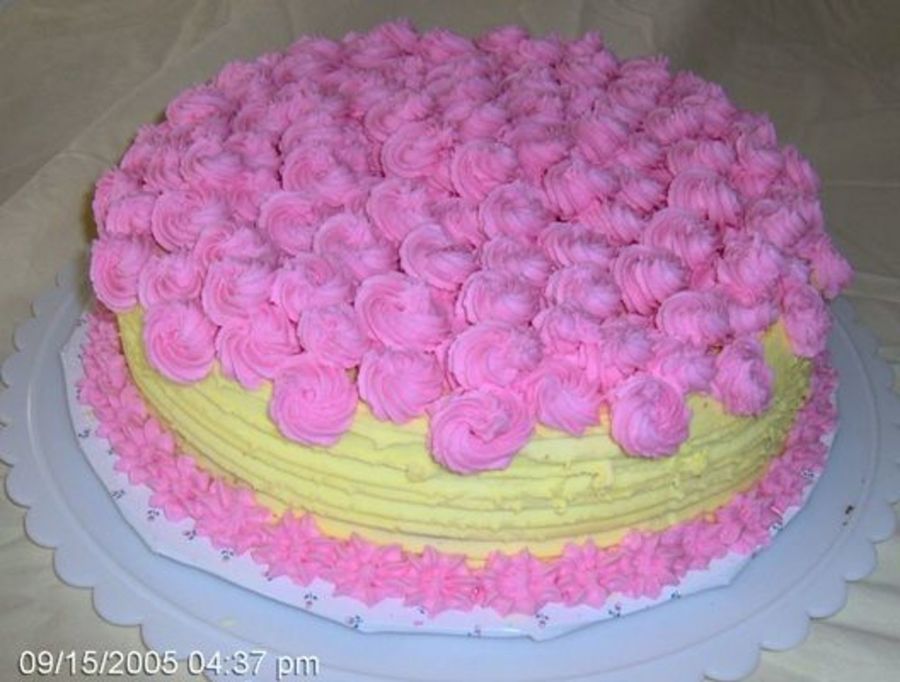 Here is a cake I did to practice rosettes.. I have to say rosettes are NOT my favorites decorating design... the picture makes them look pretty good though... and I got a new decorating comb... guess I should use it BEFORE the icing crusts next time! LOL!