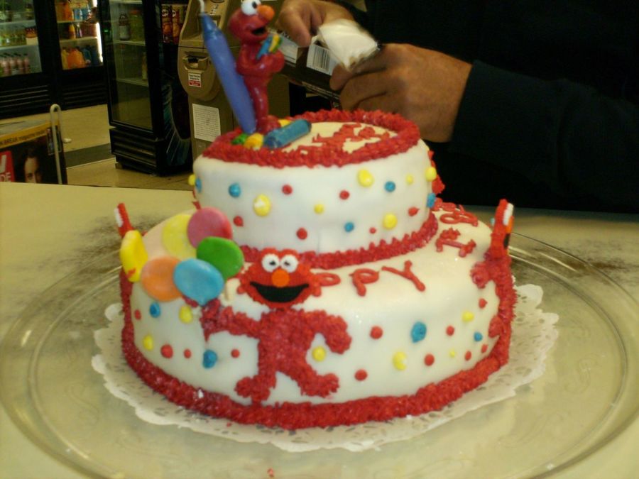 this is a cake a did for a coworkers babys first birthday. i covered it in fondant and used melted candy disks to glue premade elmo faces on to tooth picks and i piped the bodys and added fondant gifts and balloons ect...... please be honest and tell me what i can could have done to improve this cake... thanks for looking and commenting....
