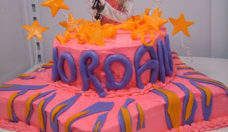 This is my first tiered cake and my final for course 3. I had had my eyes dilated 2 hours before class. . . . not a good idea! :)