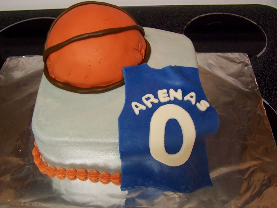 This cake design was inspired by a couple of gorgeous basketball cakes on here. Strawberry cheesecake cake w/cheesecake pudding filling, bc icing, mmf covered basketball and accents. First time covering anything in fondant...WHY did I choose a ball pan?!