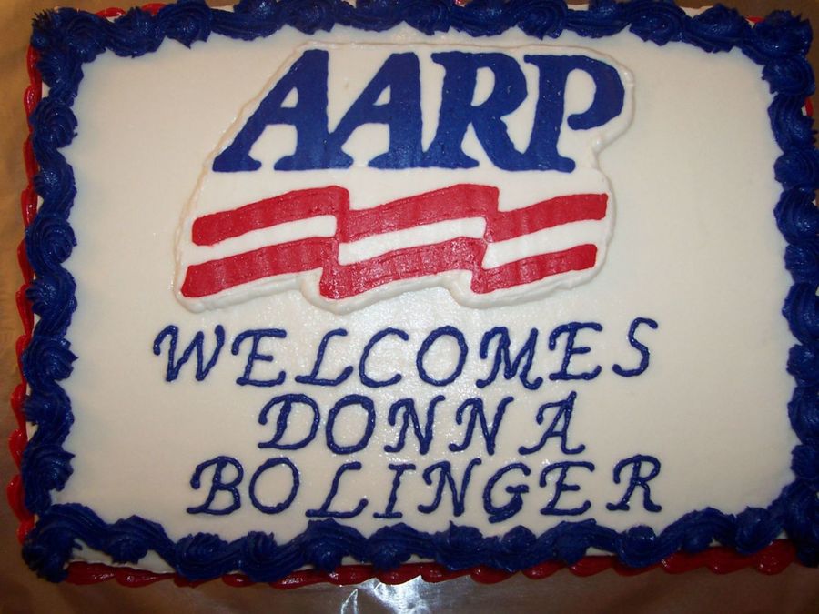 vanilla cake, buttercream frosting, AARP symbol is FBCT