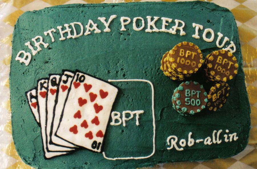 This was fun to do. I used chocolate coins that I melted slightly under the broiler to get them smooth. The "paint" was melted pastel mints to create the chips. It was my first attempt at buttercream transfers. My husband is a huge poker guy, so I wanted to give him a special cake for his birthday. The icing is not as smooth as I wanted but again, one of my first attempts.