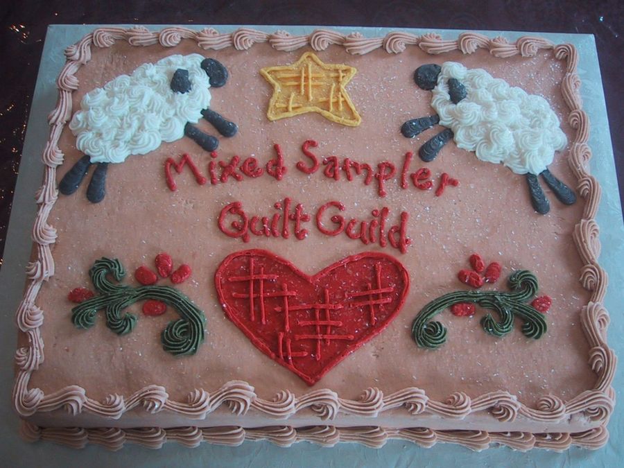 Made this for the quilt show (for the ladies "coffee time" ... I think, that's what they were going to do with it.) Based it of a quilted pillow they had. All buttercream. Used sugar sprinkles (that kind of look like salt in this pic! Opps!)