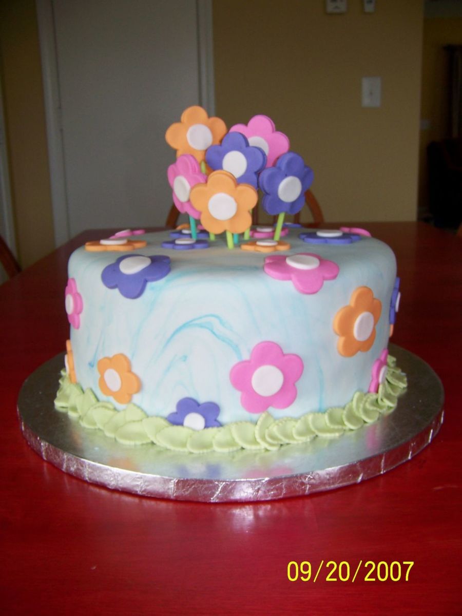 DiannaSue on 12 Oct 2007 , 10:20pm Very nice, like your marbled fondant. Like the fondant flowers also. Very pretty cake. Well done.