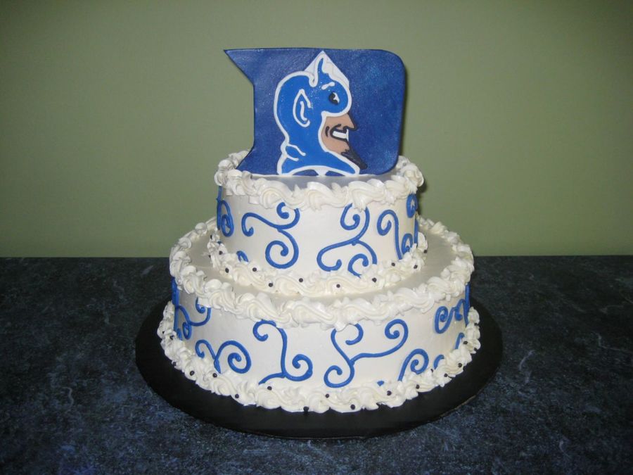 Okay, I know this doesn't look like a groom's cake. It is what the groom wanted since he is a Duke fan. It is a vanilla cake with strawberry filling and vanilla swiss meringue buttercream. I made the topper out of gumpaste and piped the details on with rc.