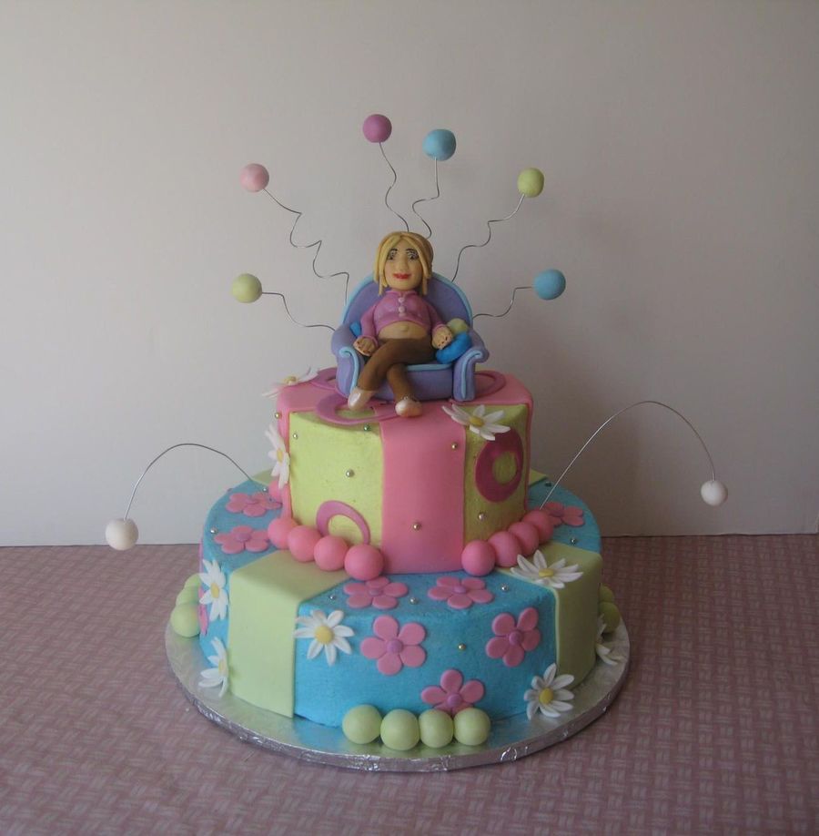 This is a cake inspired by the Great Duff's cake "bellylicious". My sister picked this out for her birthday (since she's pregnant and all and thought it would be a fun cake) Anyways, it's a 10 and 6 stacked marble and chocolate. Iced in buttercream w/fondant decorations..my second attempt at fondant figure, still need LOTS of work. Thanks for looking!