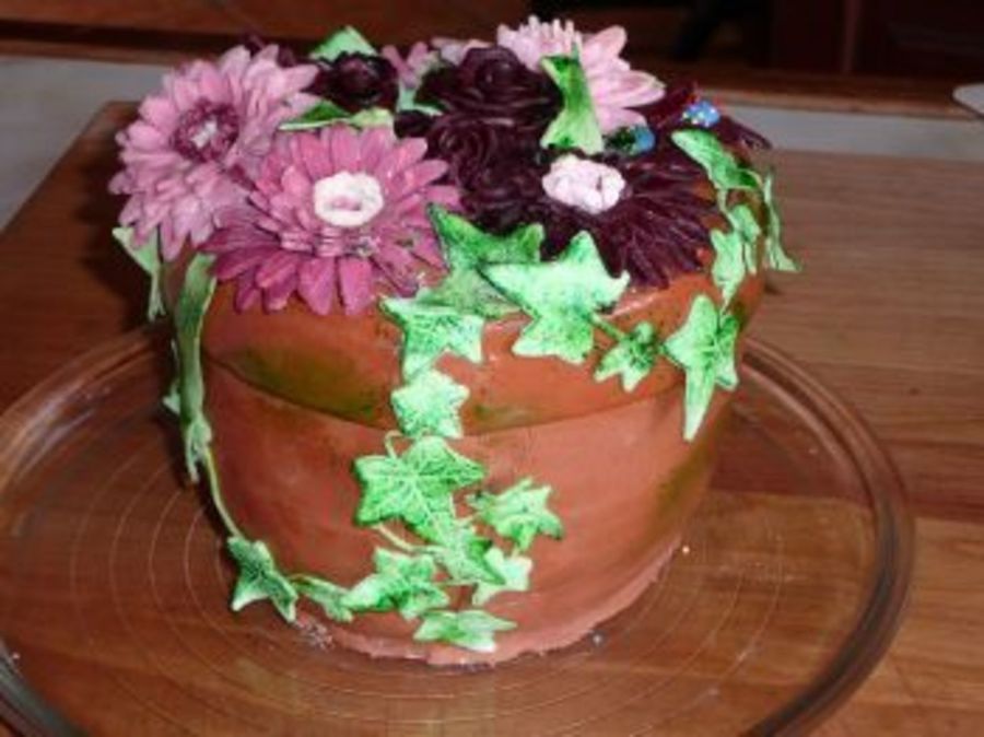 Made a flowerpot for my friends 61:st birthday. Chocolate and orange cream,flowers and pot of SP.