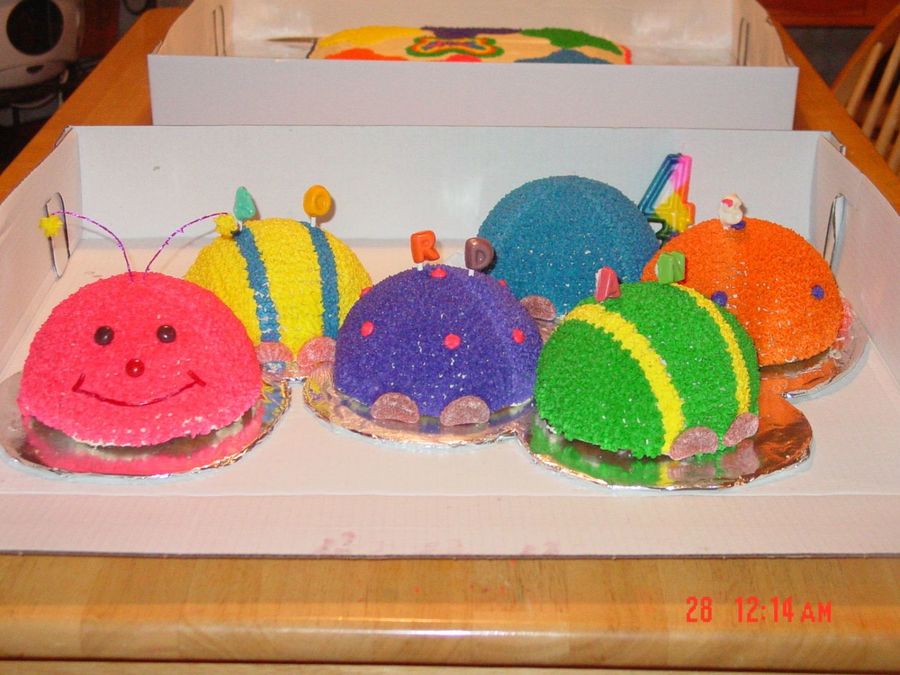 The cake is made with the sports ball pan, the antennas are made out of floral wire wrapped in cellophane and the feet are jelly fruit slices cut in half. The frosting is all buttercream.