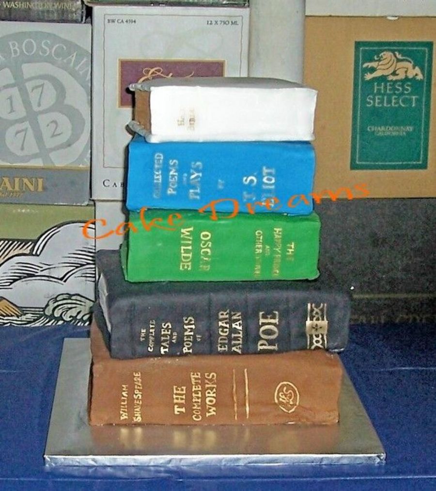 Agree with teekakes .... these look like real books! Especially the black Poe book. It really looks 'aged' and worn, just like a good book should look! What an inspirational cake!!