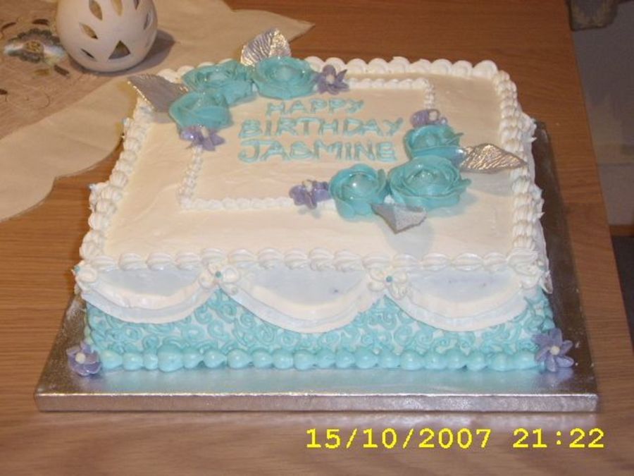 indydebi on 17 Oct 2007 , 3:12pm I love how the blues on the sides are framed by the ribbon. You did a good job on this. Your roses look wonderful.