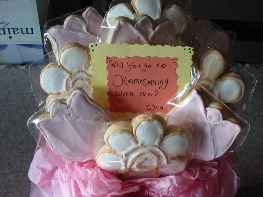 My first cookie bouquet. It was for my brothers girlfriend to ask her to homecoming. Decorated with royal icing.