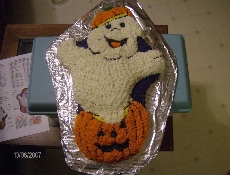 This was from the Haunted Pumpkin Pan by Wilton. The cake wanted to fall apart on my, so I had to improvise some on the details. This was one of 6 cakes I made for the fall festival at the school my boys go to.