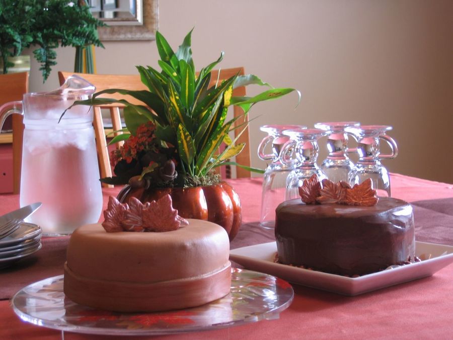 My first taste test for wedding cake ....this is my setup. cross your fingers !! The bride wasnted maple filling and chocolate . so I made a chocolate bourbon cake with maple filling and maple icing with chocolate ganache and a white choc. cake with the maple filling and a maple icing with choc. MMF fondant... thanks for looking.