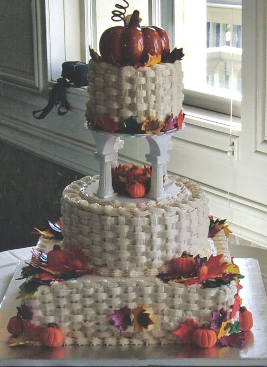 indydebi on 21 Oct 2007 , 1:05am Everything looks beautiful! The basketweave is very well done! The pumpkins are a great touch! Wish I'd seen this a couple of weeks ago for my fall wedding cake .... I would have 'borrowed' some of your ideas!