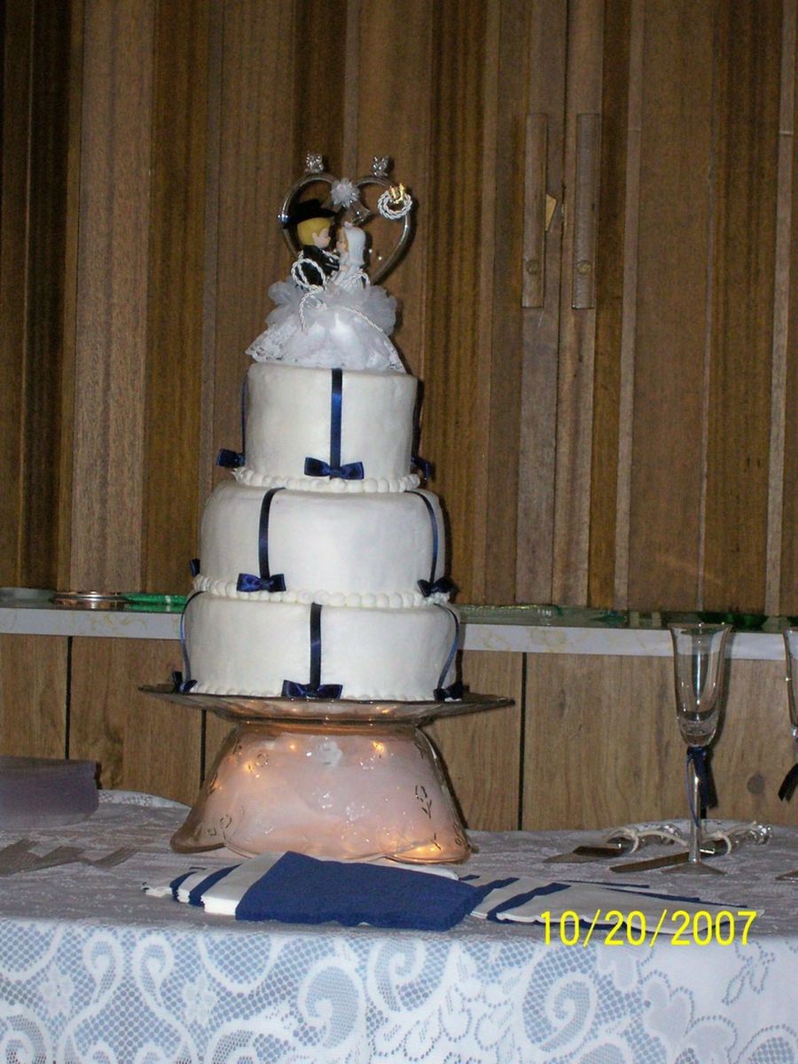 My sister and I made this cake for a friends cousin that got married over the weekend. It turned out better that I expected but not what I hoped for. We made the cake then had to travel 2 and 1/2 hours to the church....thank goodness the weather was not hot. We did not assemble until we reached the church but the layers shifted during the long, winding, hilly, curvy trip. The Bride loved it and that's all that mattered to me.