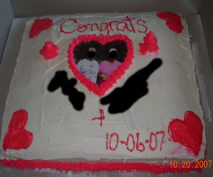 The picture was done with a digital snapshot and wrapped in plastic wrap to protect the cake. Icing was a bit thin when it come to the roses so we improvised with hearts