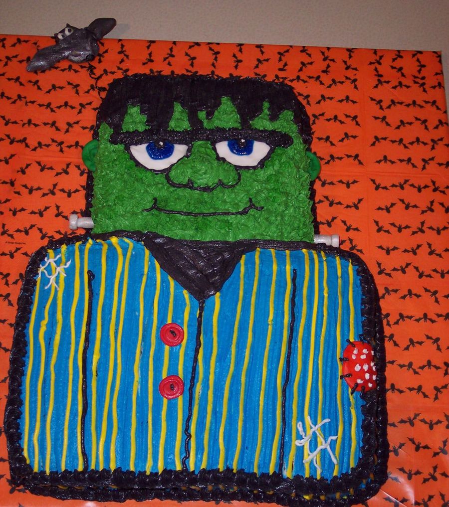 Halloween birthday party. Choc. cake with butter cream frosting.