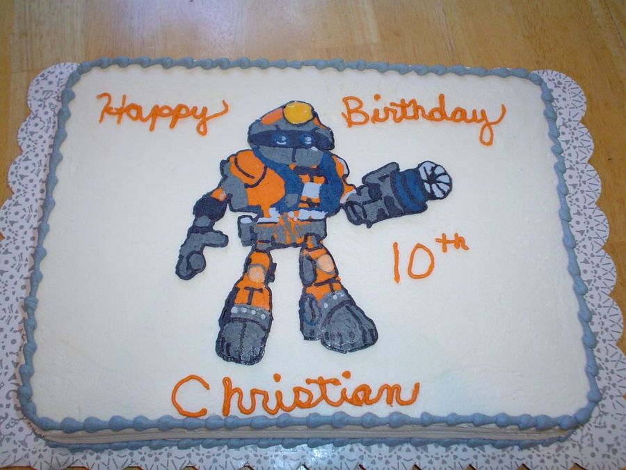 My son wanted this Glitch robot from a video game he plays on his cake. This was the best I could do for him. He liked it.