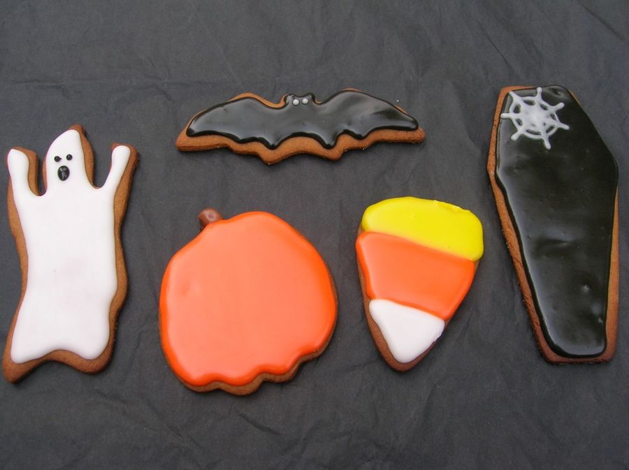 These are a few of the cookies I made for Halloween. They are spiced gingerbread cookies with royal icing. Thanks for looking!