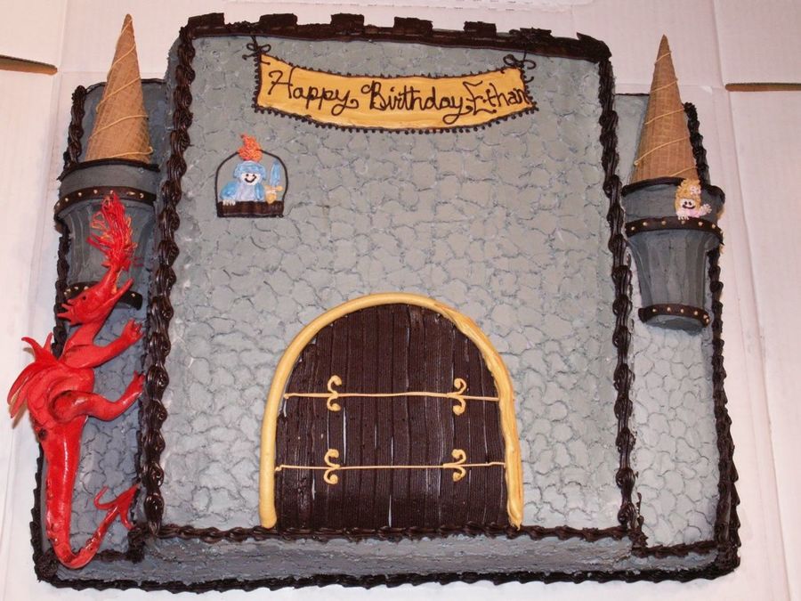 the different textures really make this cake! the dragon is cool and i love the princess' hair!!