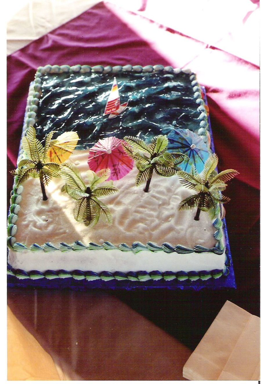Thanks! It's piping gel that I tinted blue and green. I color striped my bag with blue and green to do the shell border. And if your sand isn't white, you can use brownulated sugar (it's a granulated brown sugar that they sell at grocery stores now).