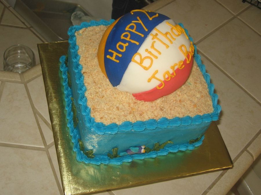 Beach ball made from fondant, sand from almonds.