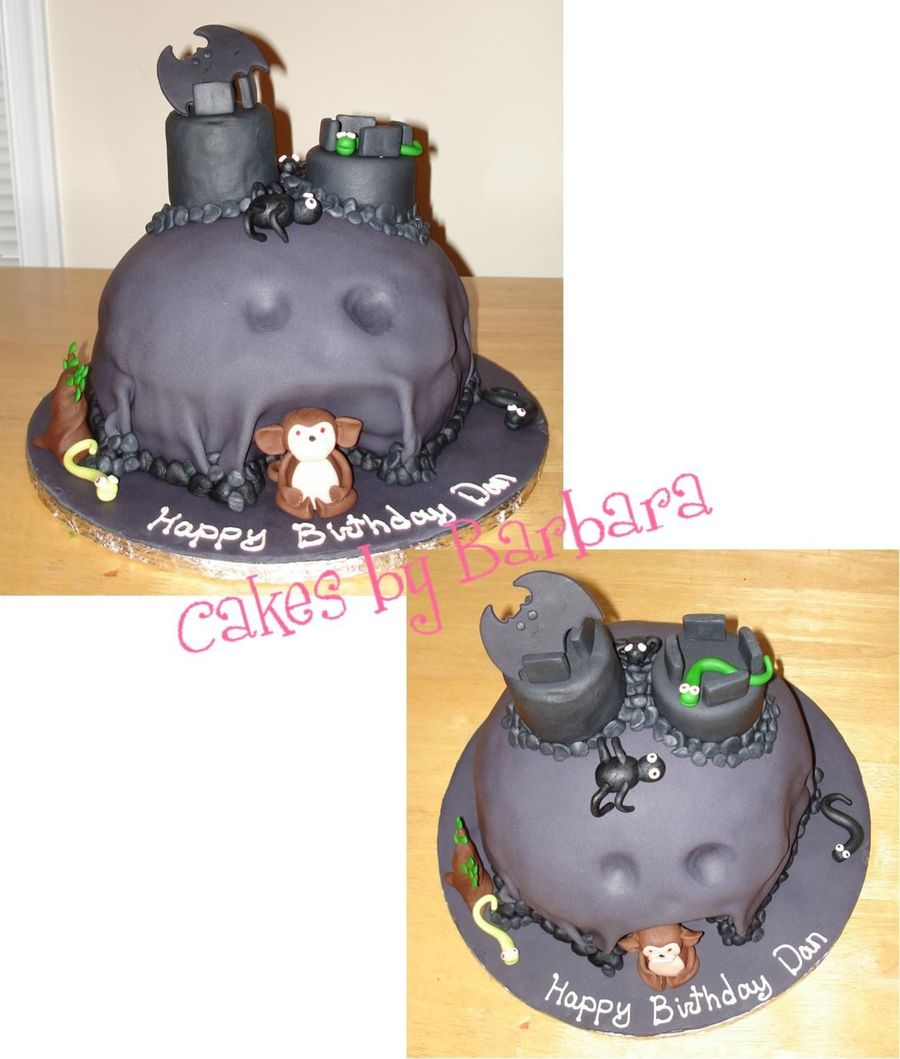 My version for a friend Cake is covered in fondant. The towers are styrofoam. i love the evil monkey, his face is hard to see because of the flash on the camera.