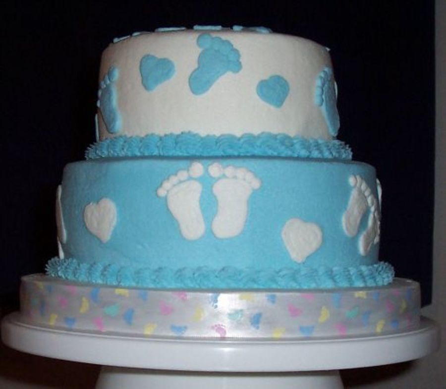Blue and white baby feet & hearts. 8" and 6". All BC. Thanks for looking!