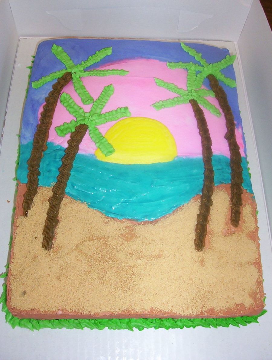 I made this cake for a couple that got married on the beach at sunset. It is all buttercream with graham dust for sand.