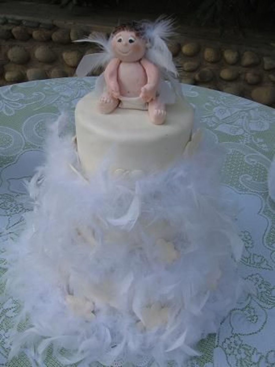 shoup_family on 28 Oct 2007 , 4:25am What a cute baby!!! This cake is so sweet and adorable!! There's cake under the feather's right?? What size are the cakes?